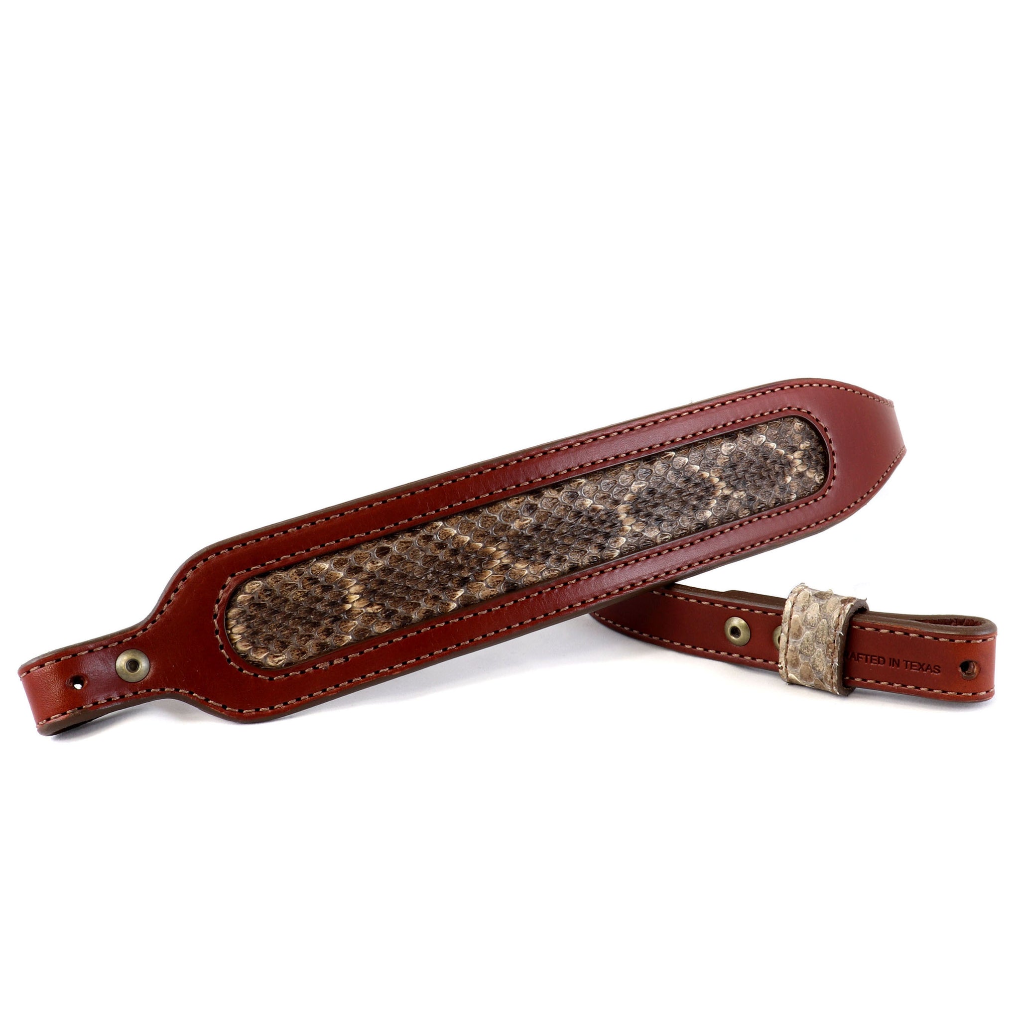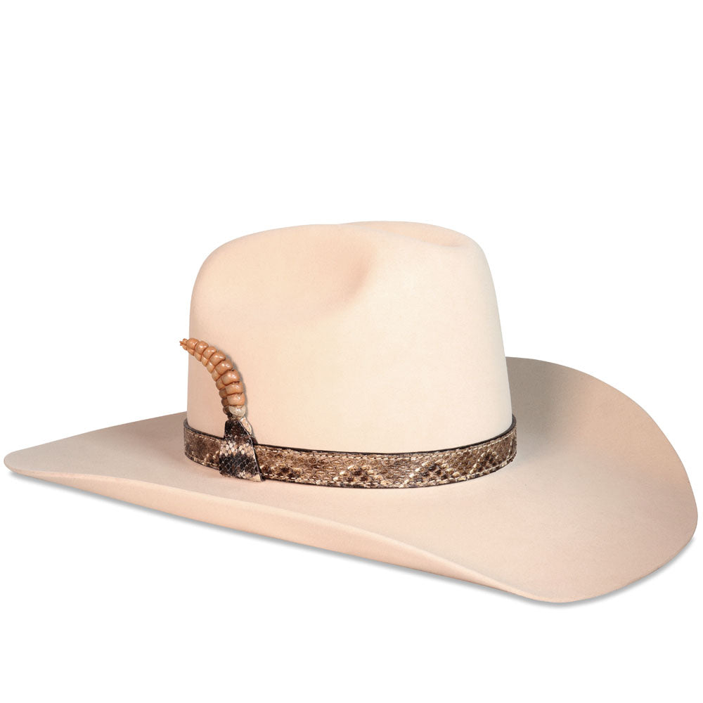 This individually handmade hatband is crafted from genuine Western Diamondback Rattlesnake and backed with full-grain American Belting leather. The hatband is adjustable with a nickel finished buckle, loop, and tip....
